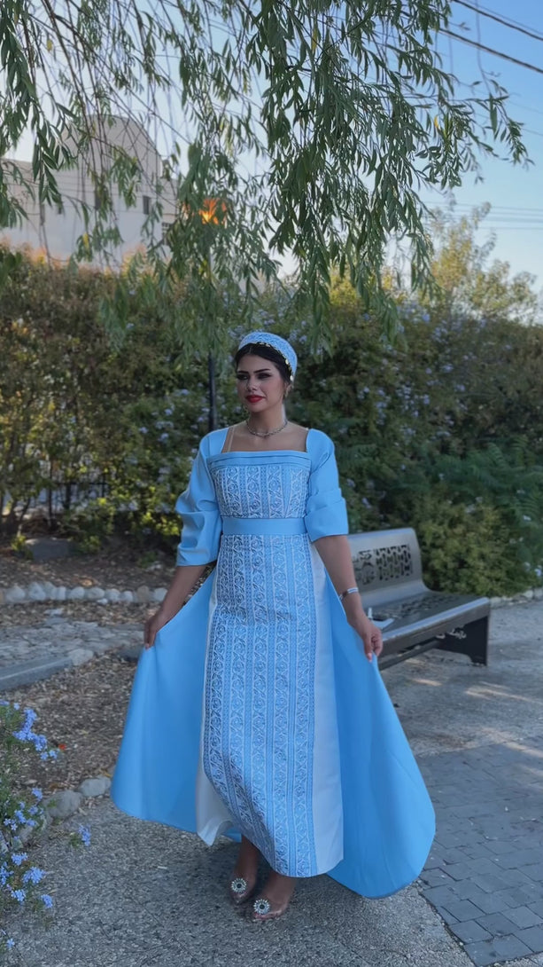 فستان فاخر مطرز بأكمام منتفخة + ربطة رأس متناسقة مجانية #110